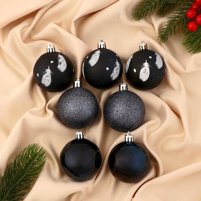 Набор шаров пластик d-6 см, 7 шт "Воздушные перья" синий