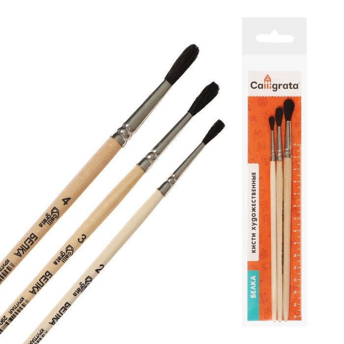 Набор кистей Белка 3 штуки, Calligrata №2 (круглые №: 2, 3, 4), деревянная ручка