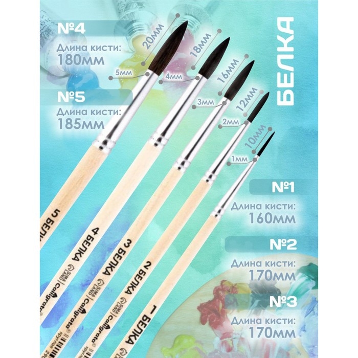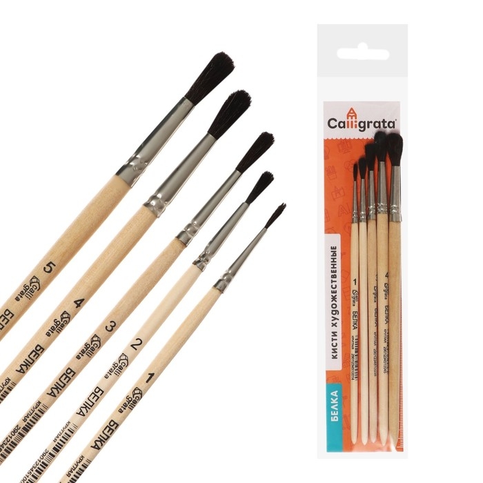 Набор кистей Белка 5 штук, Calligrata №4 (круглые №: 1, 2, 3, 4, 5), деревянная ручка