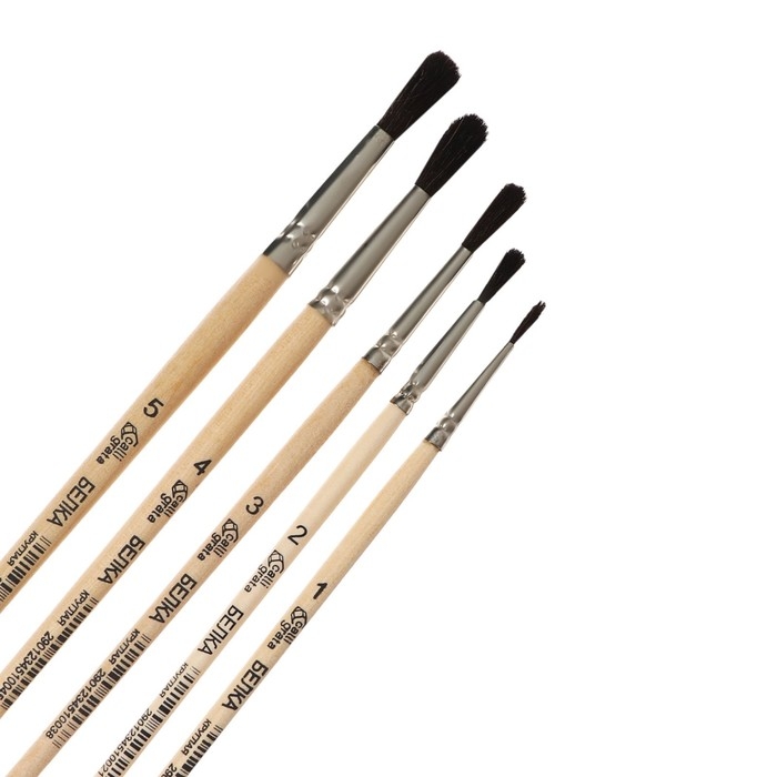 Набор кистей белка круглые 5 штук (№1,2,3,4,5) с деревянными ручками на блистере