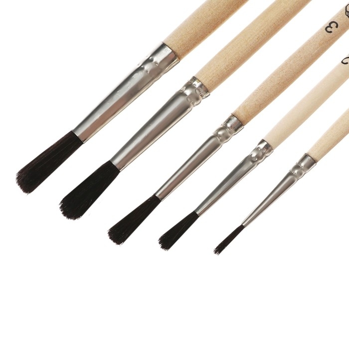 Набор кистей, щетина, плоские, 6 штук: № 1, 2, 3, 4, 5, 6, с деревянными ручками, на блистере