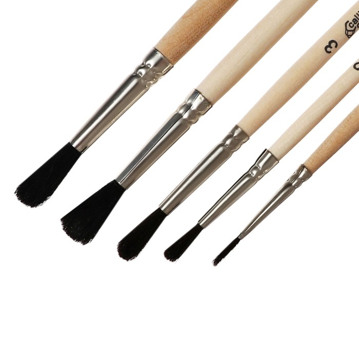 Набор кистей, щетина, плоские, 6 штук: № 1, 2, 3, 4, 5, 6, с деревянными ручками, на блистере