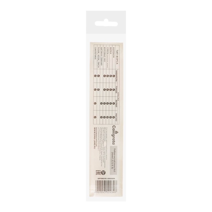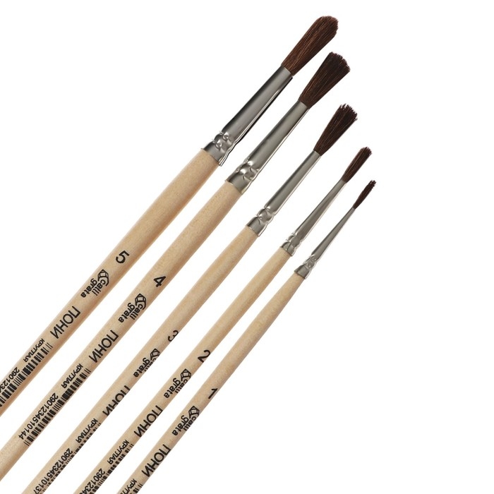 В наборе круглые кисти №1, №2, №3, №4, №5.