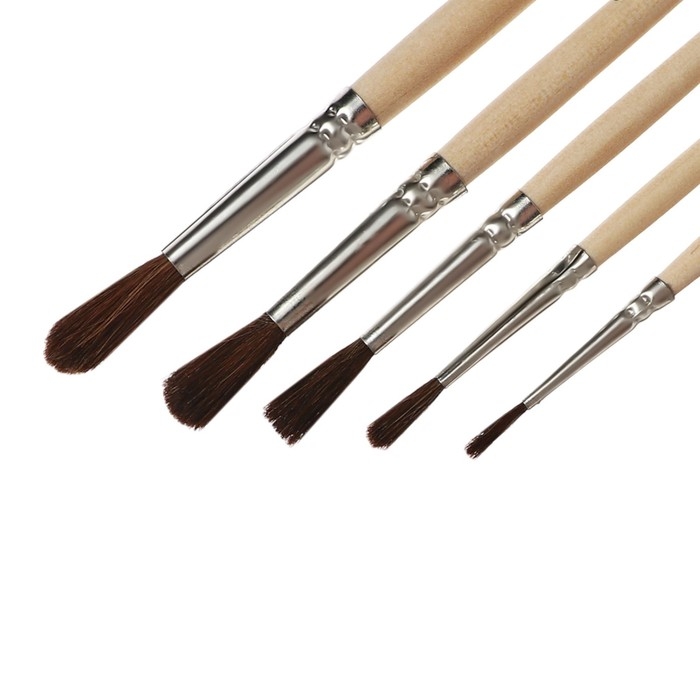 Набор кистей белка круглые 5 штук (№1,2,3,4,5) с деревянными ручками на блистере