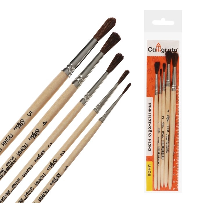 Набор кистей Пони 5 штук, Calligrata №3 (круглые №: 1, 2, 3, 4, 5), деревянная ручка