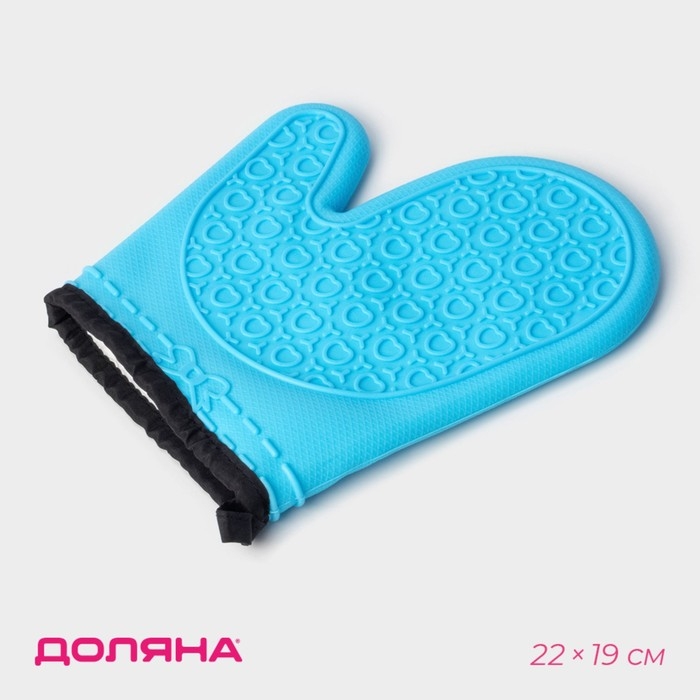 Рукавица для горячего Доляна «Профи», силикон, 22×19 см, цвет голубой
