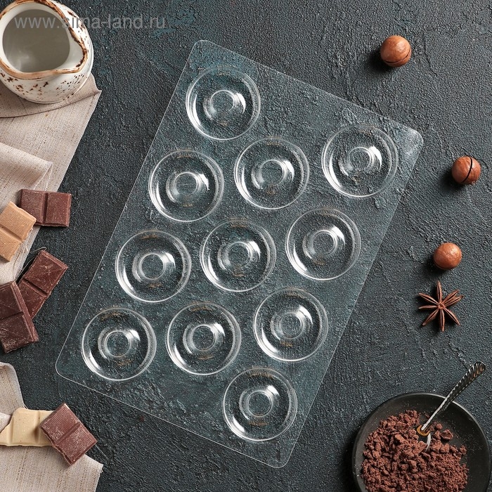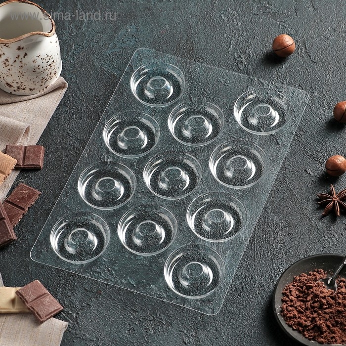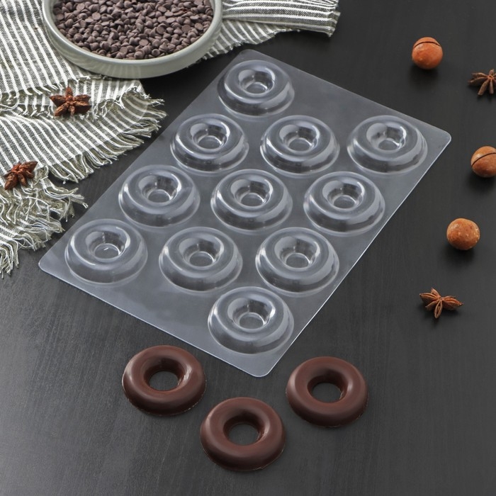 Форма для конфет и шоколада «Пончик», 27×18 см, 11 ячеек, цвет прозрачный