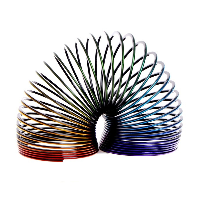 А ещё красочная пружинка умеет самостоятельно передвигаться — шагать вниз по ступенькам. Количество её выкрутасов безгранично — фантазируйте.