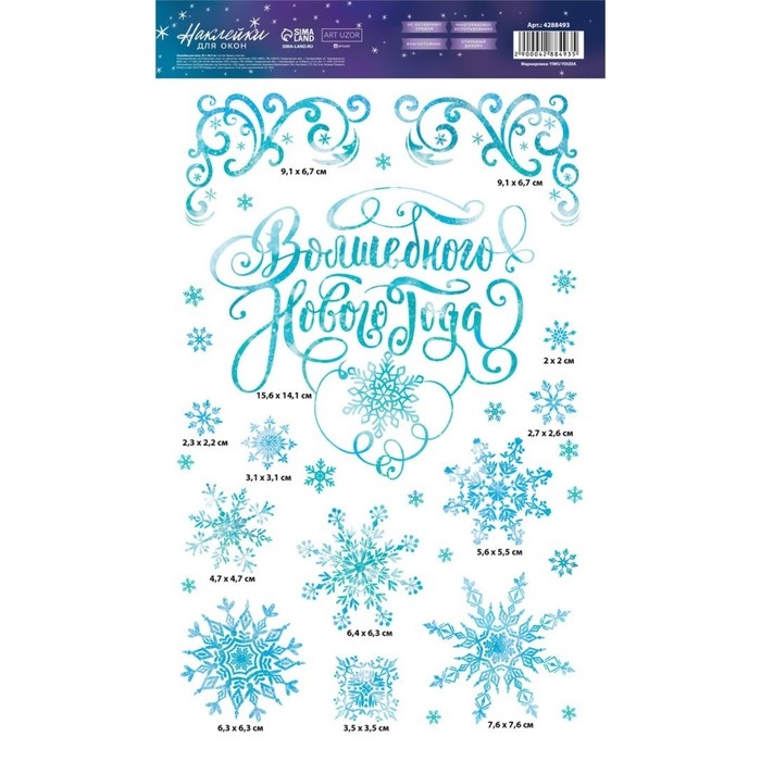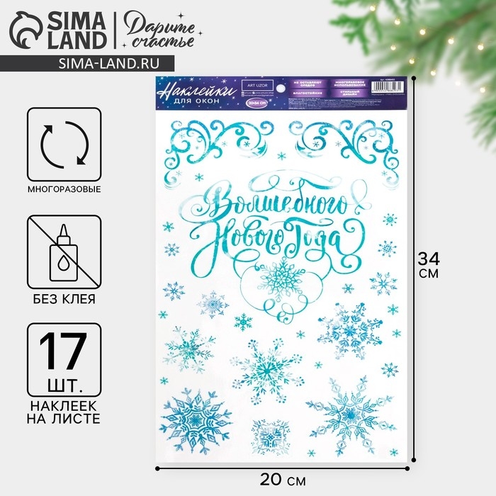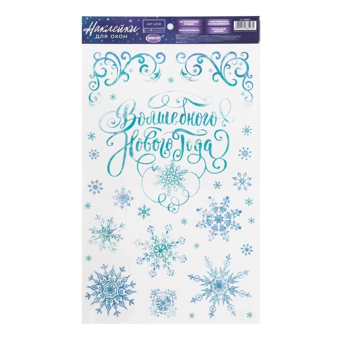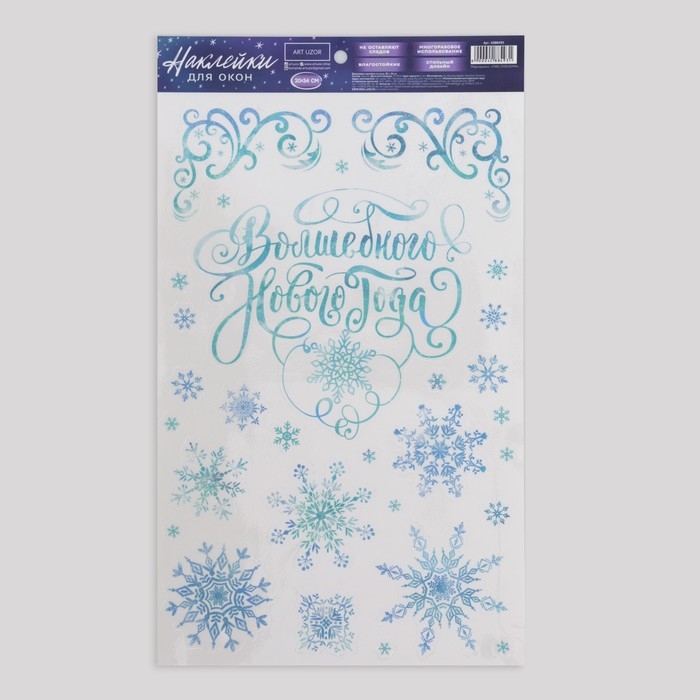 Наклейки новогодние на окна, виниловые «Зимние узоры», многоразовые, 20 х 34 см, Новый год