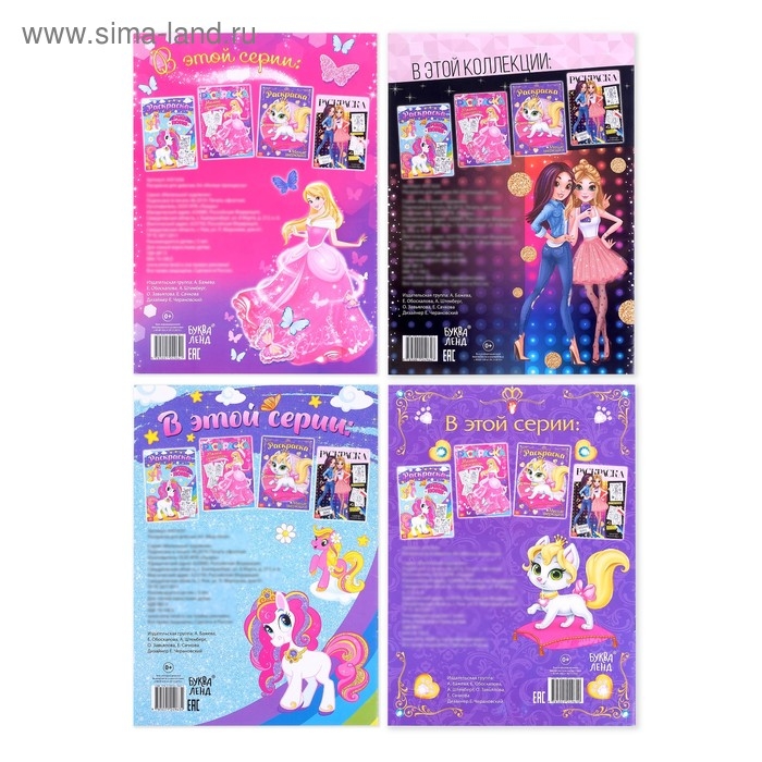 Раскраски набор «Для девочек», 4 шт. по 16 стр., формат А4