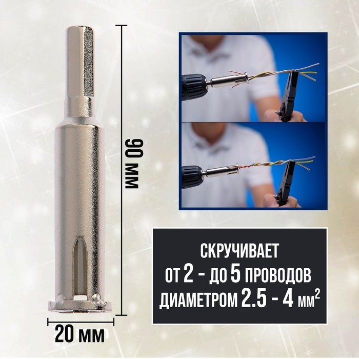 Насадка для скрутки проводов ТУНДРА, шестигранный хвостовик, для 5 проводов 2.5 - 4 мм2