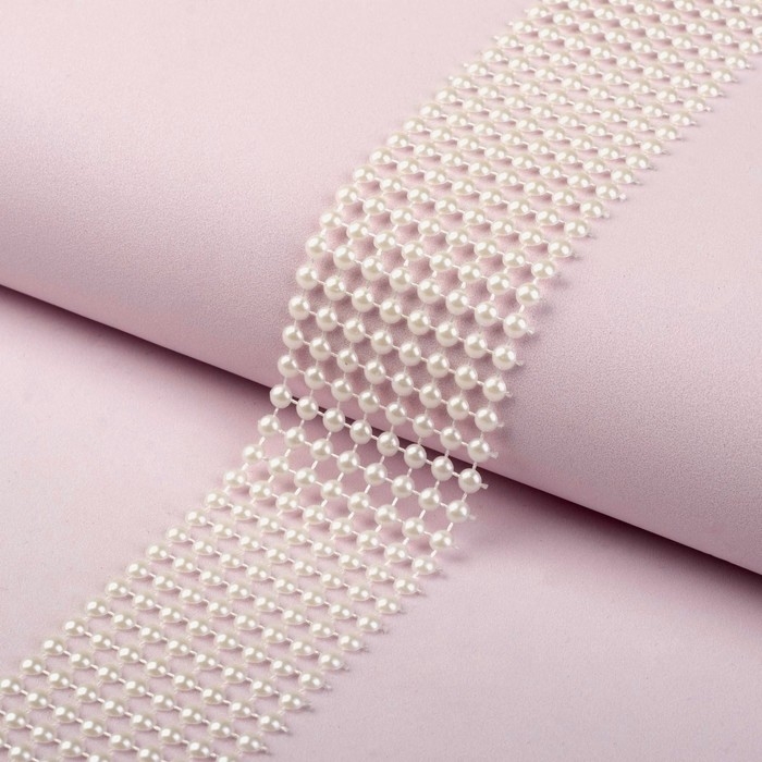 Лента с имитацией жемчуга, 4 см, 9 ± 1 м, цвет белый