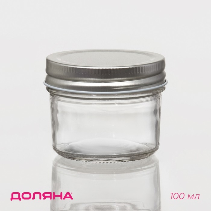 Банка стеклянная для хранения сыпучих продуктов Доляна «Сильвер», 100 мл, 7×5,5 см, с металлической крышкой