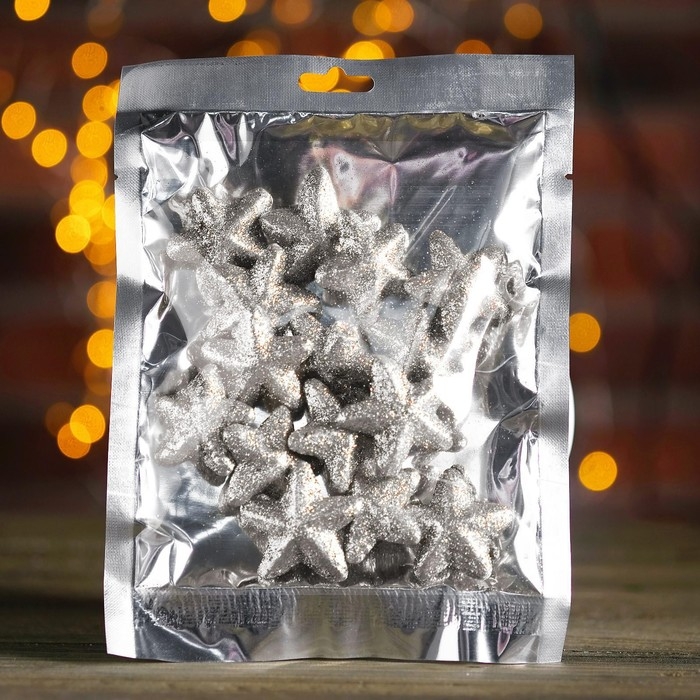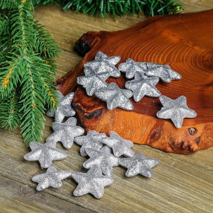 Фигурка для поделок и декора "Звезда", набор 15 шт., размер 1 шт. 3,5×3,5×2 см, цвет серебро