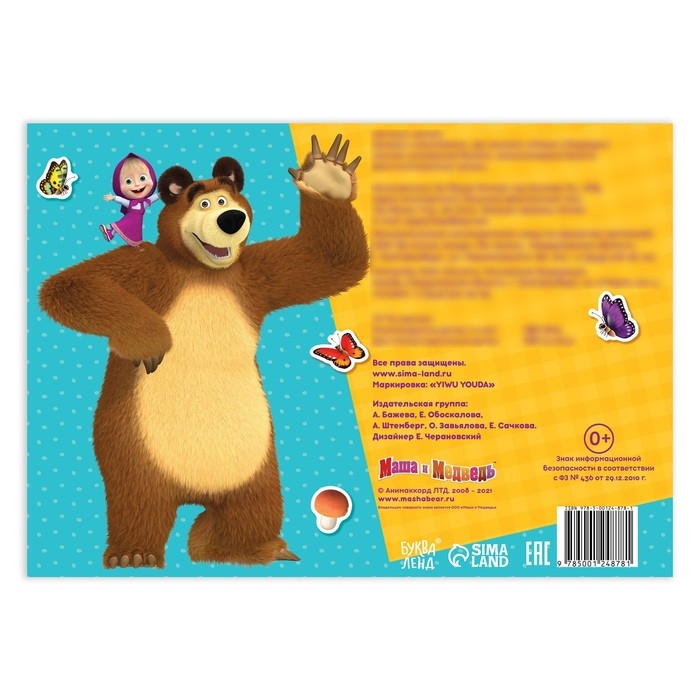 Альбом 250 наклеек «Маша и медведь», 17 × 24 см, 12 стр., Маша и Медведь