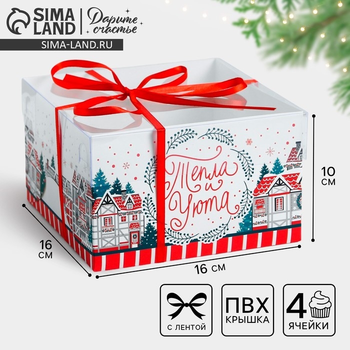 Коробка для 4 капкейков, белая 16 х 16 х 14 см