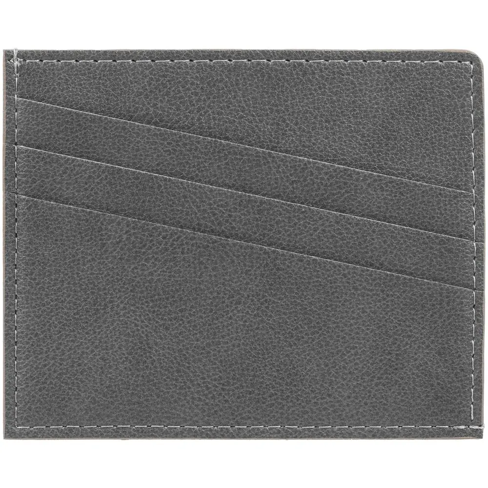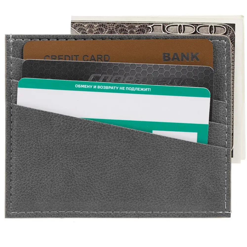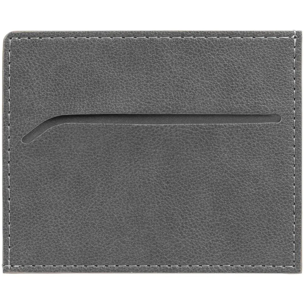 Чехол выполнен из материала Petrus, серый СС, дополнен окрашенным срезом края и внутренним карманом из серого картона. Имеет 4 отделения для кредитных карт и 1 отделение для купюр.