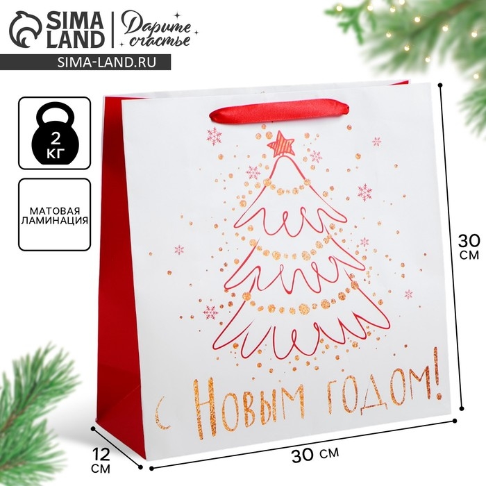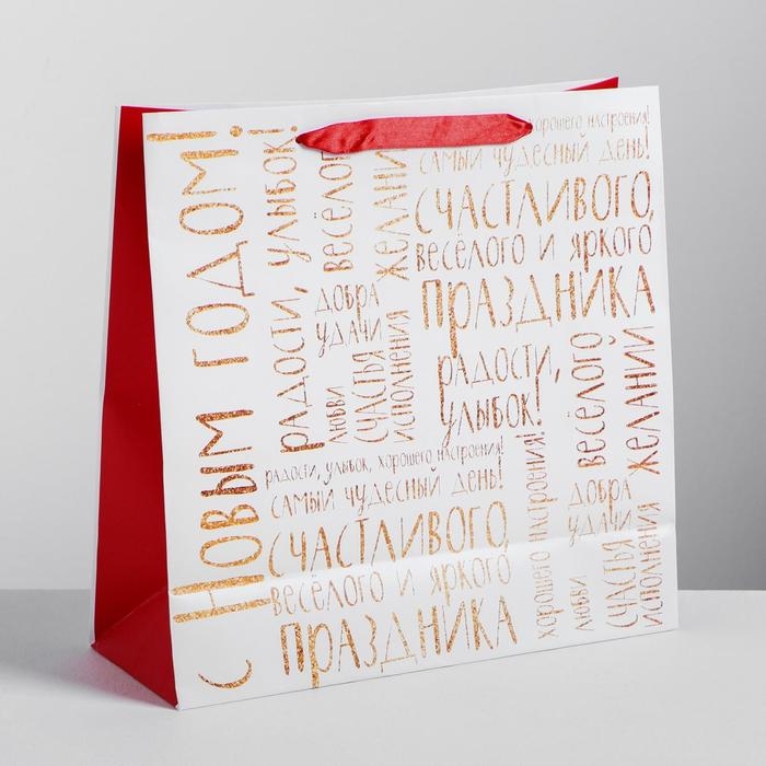Пакет подарочный новогодний ламинированный квадратный «Снежного Нового года!», 30 х 30 х 12см, Новый год