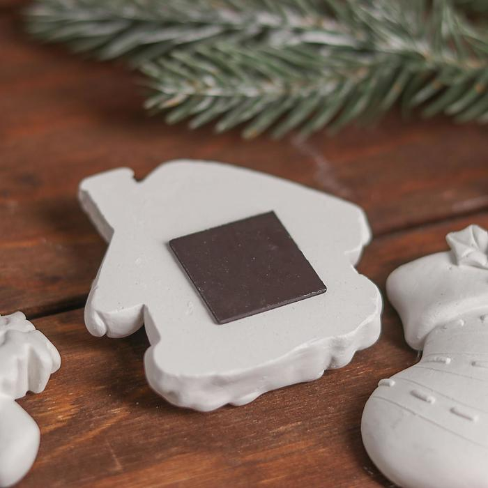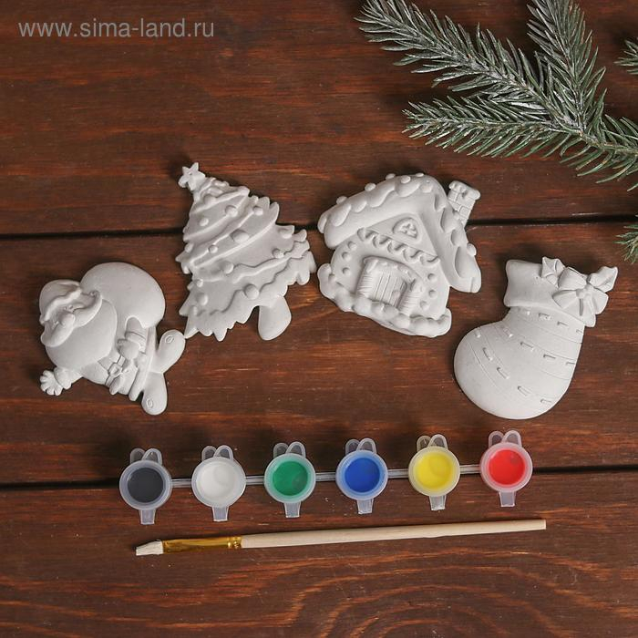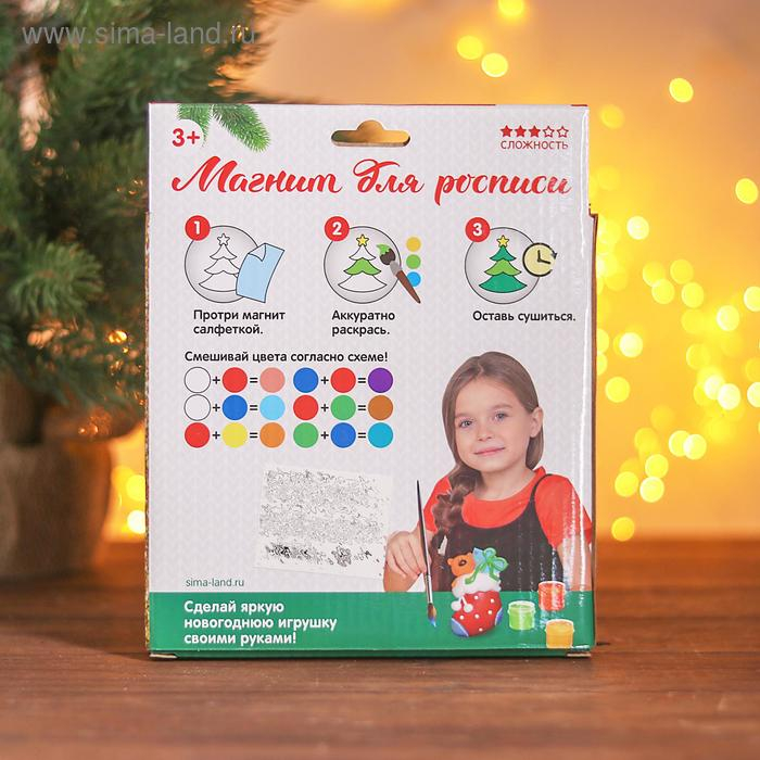 Набор новогодних магнитов под раскраску 4 шт. «Волшебный» краски 6 цв. по 2 мл