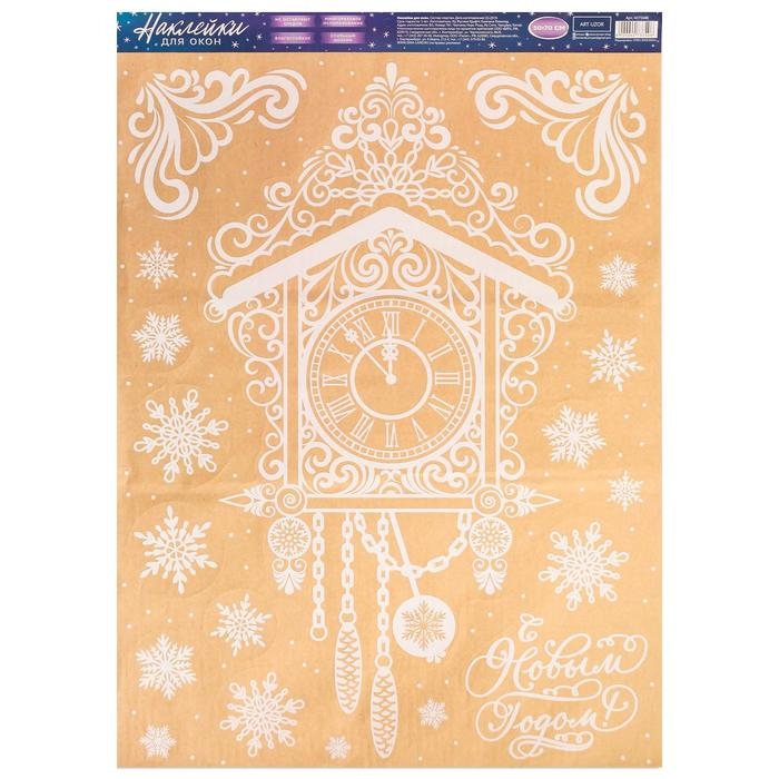 Наклейки новогодние на окна «Новогодние часы», многоразовые, 50 х 70 см, Новый год