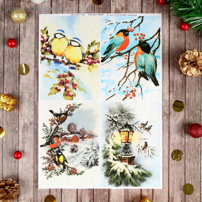 Декупажная карта "Зимние птицы" плотность 45 г/м2, формат А4