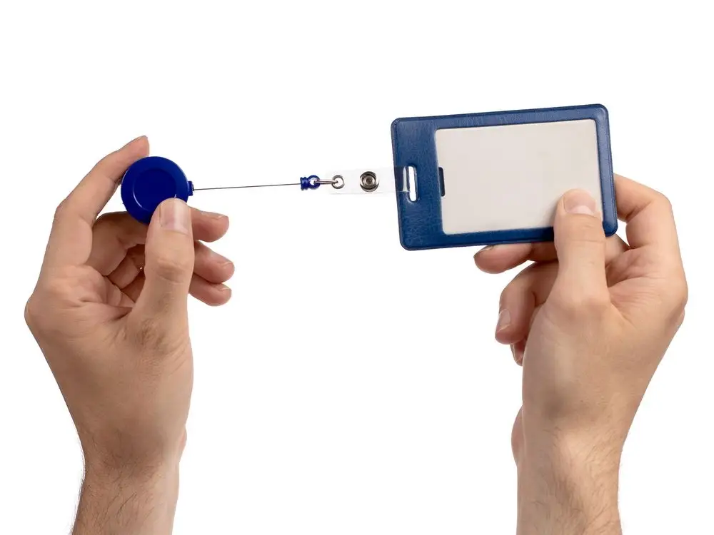 Ретрактор крепится к одежде, а с другой стороны можно поместить бейдж, визитку или магнитную карту. В корпусе спрятан сворачивающийся шнур, который позволяет при необходимости демонстрировать содержимое держателя, не снимая его.