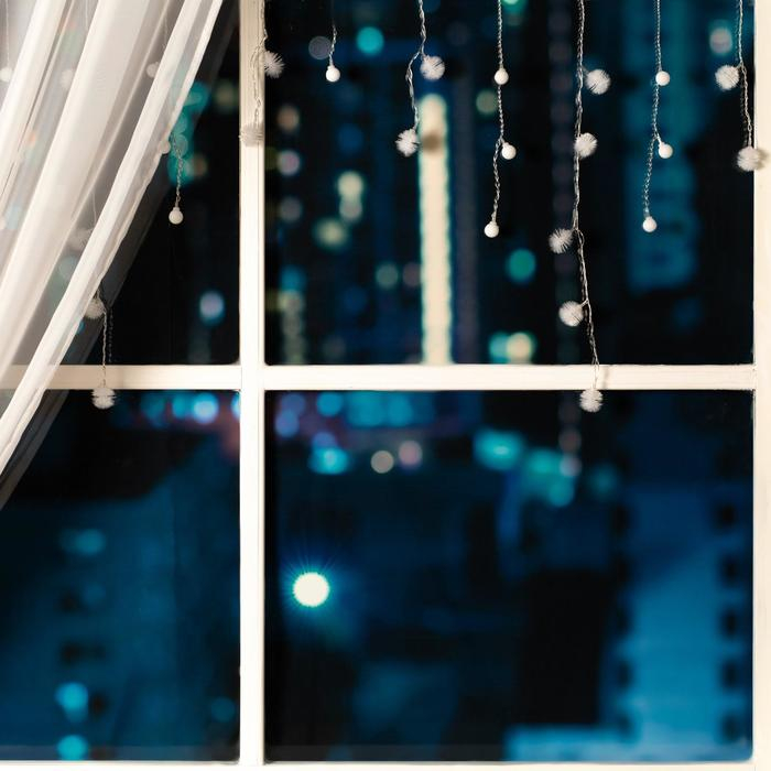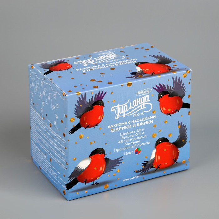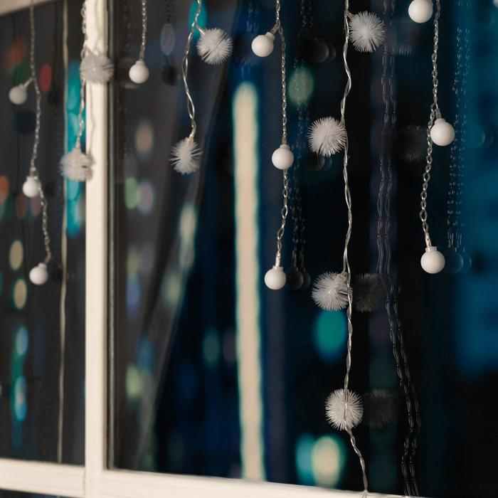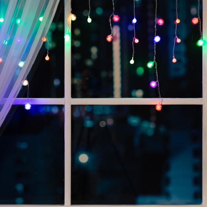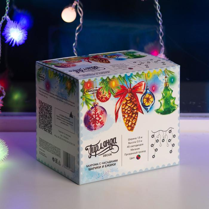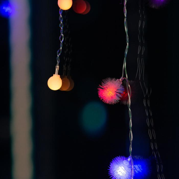 Гирлянда «Бахрома» 1.8 × 0.5 м с насадками «Шарики и ёжики», IP20, прозрачная нить, 48 LED, свечение мульти (RG/RB), мигание, 220 В