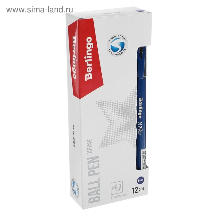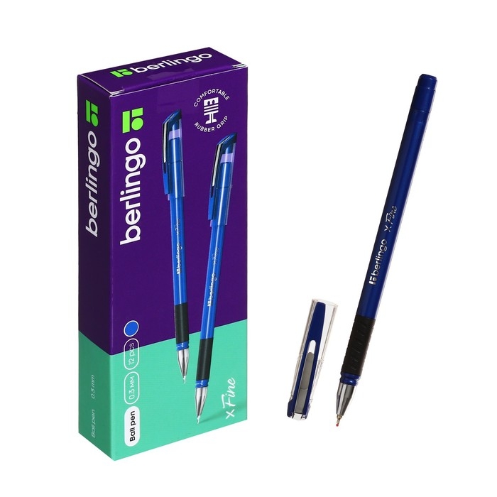 Ручка шариковая Berlingo xFine 0.3, синяя, корпус синий, резиновый упор, цена за 1 штук.