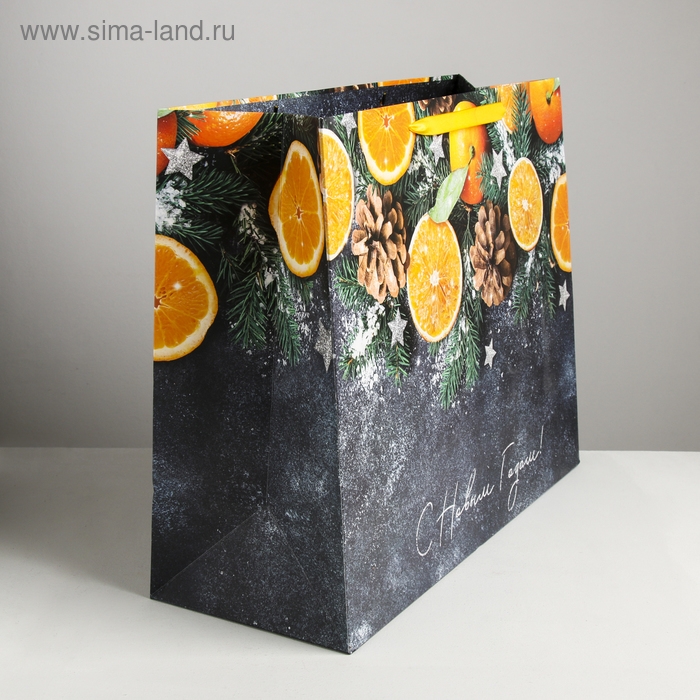 Пакет подарочный новогодний ламинированный «Мандарины», XL 49 х 40 х 19 см, Новый год