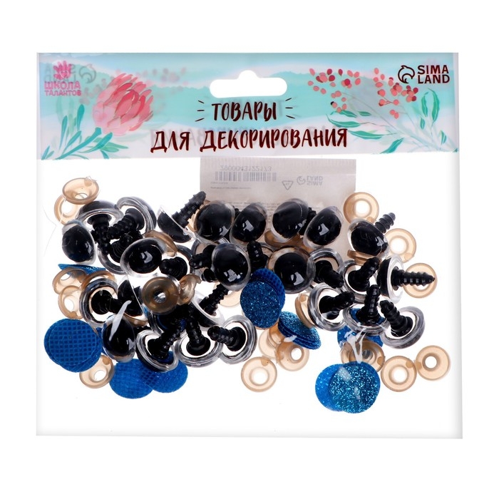 Глаза винтовые с заглушками, «Блёстки» набор 34 шт, размер 1 шт: 1,4 см, цвет синий