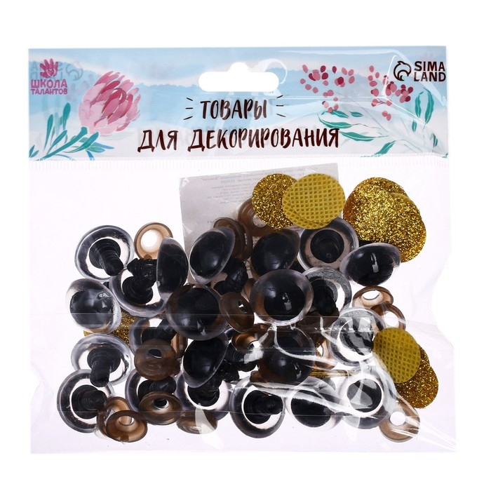 Глаза пришивные, набор 48 шт., размер 1 шт. — 1 см, цвет чёрный