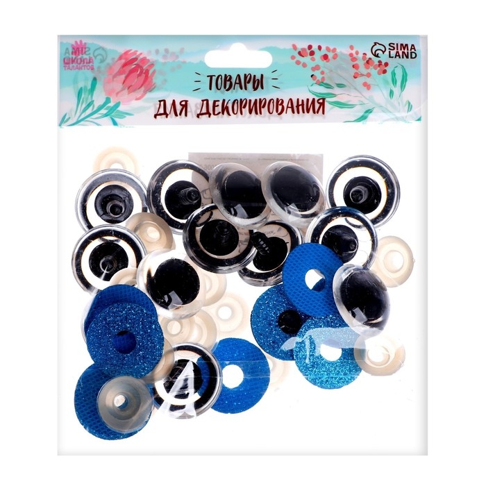 Глаза винтовые с заглушками, «Блёстки» набор 14 шт, размер 1 шт: 2,8 см, цвет синий