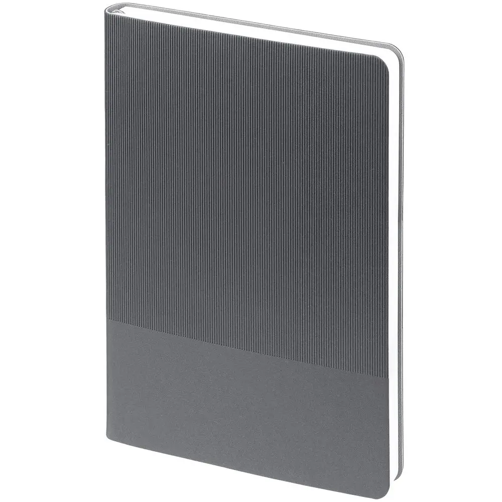 Ежедневник с гибкой обложкой выполнен из материала Soft Touch Perl, серый СС и Latte, серый (внутренний материал); дополнен ляссе серого цвета и фактурным тиснением обложки.