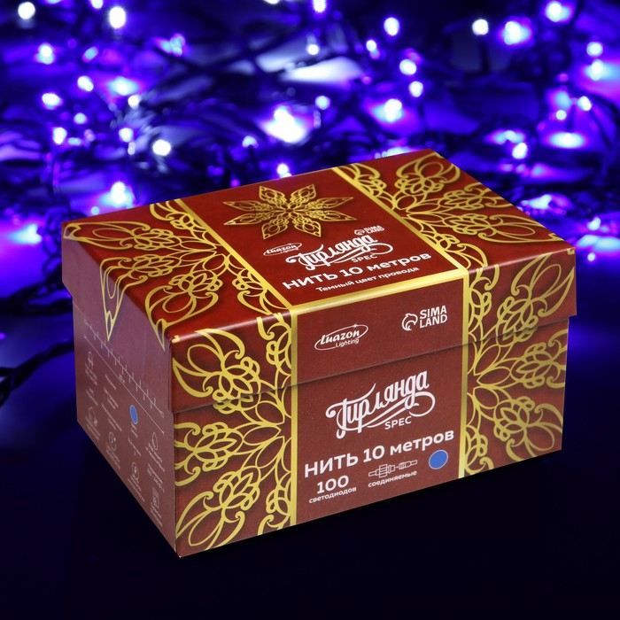 Гирлянда «Нить» 10 м, IP44, УМС, тёмная нить, 100 LED, свечение синее, мерцание белым, 220 В