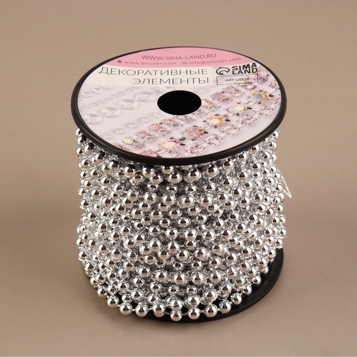 Бусы на нитях, круглые, 4 мм, 9 ± 1 м, цвет серебряный