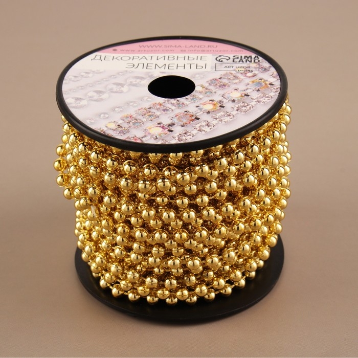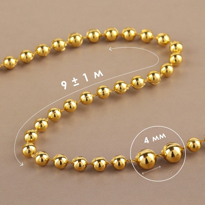 Бусы на нитях, круглые, 4 мм, 9 ± 1 м, цвет золотой