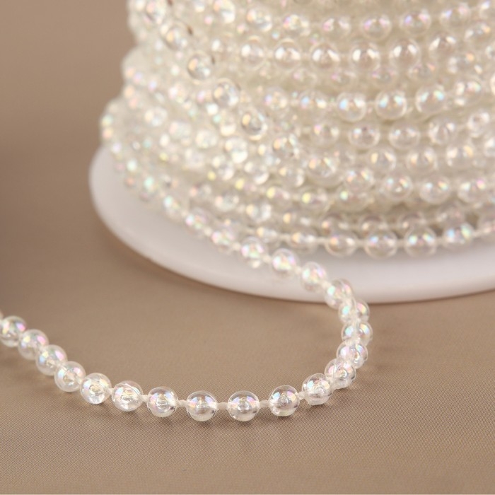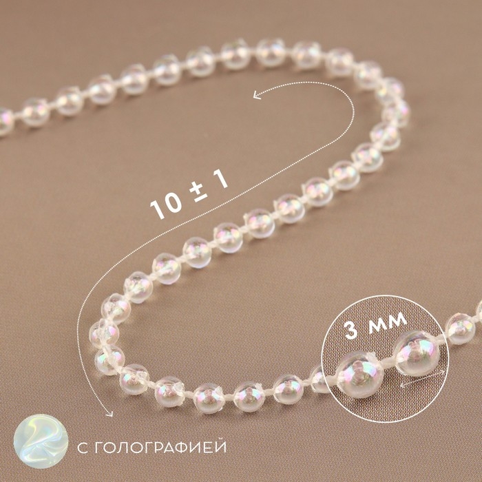 Бусы на нитях, с голографией, круглые, 3 мм, 9 ± 1 м, цвет белый