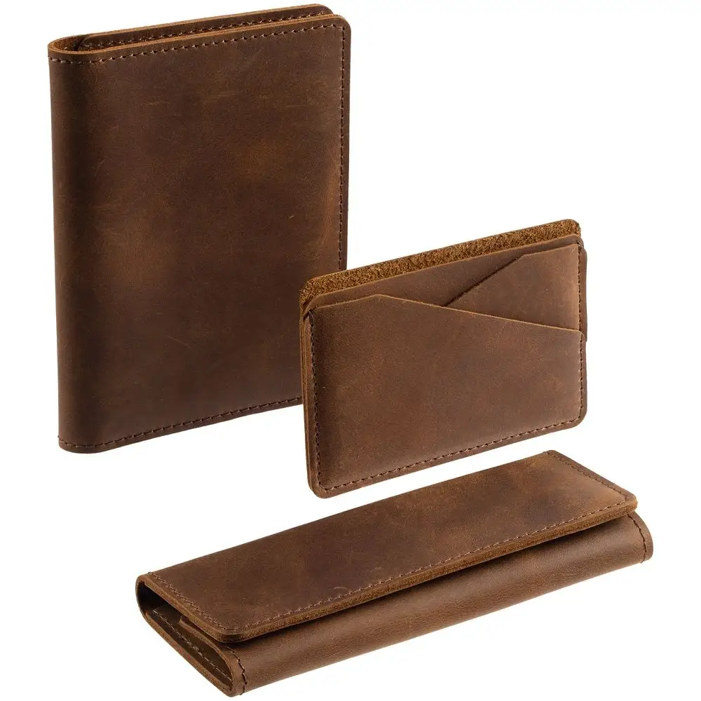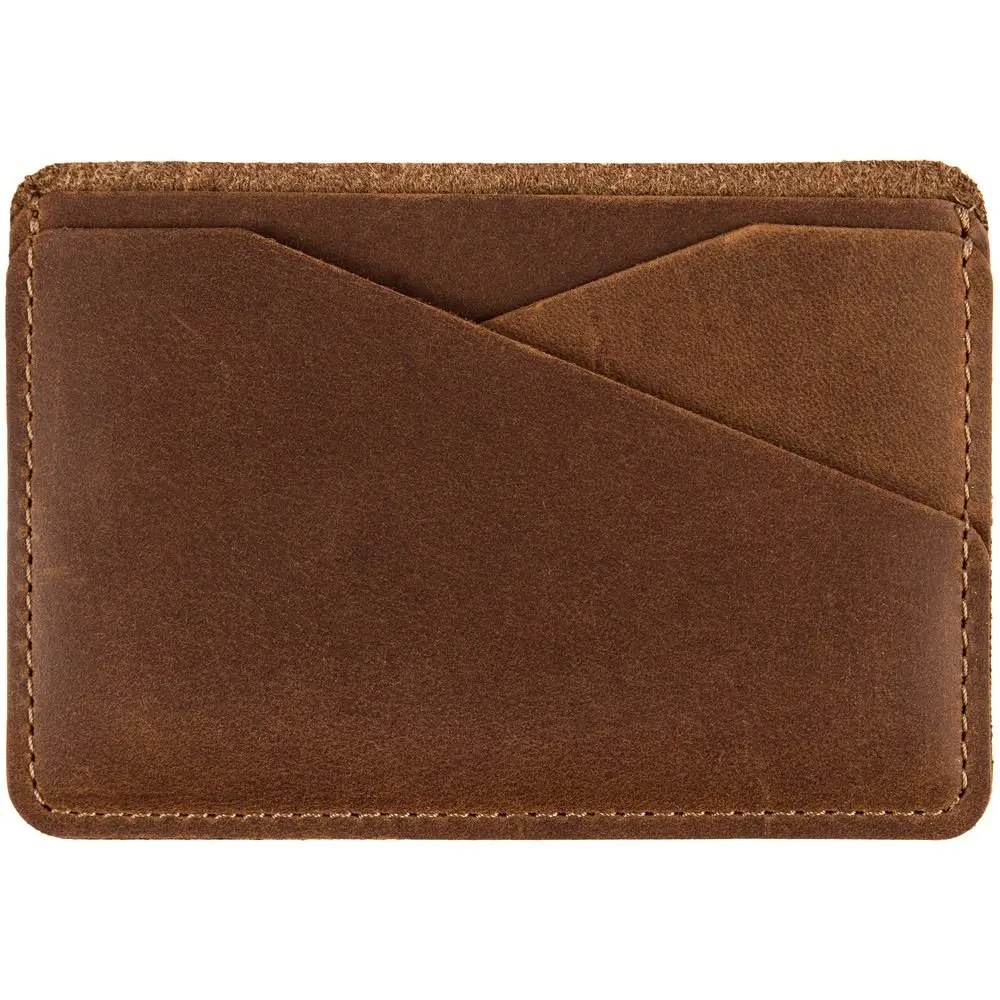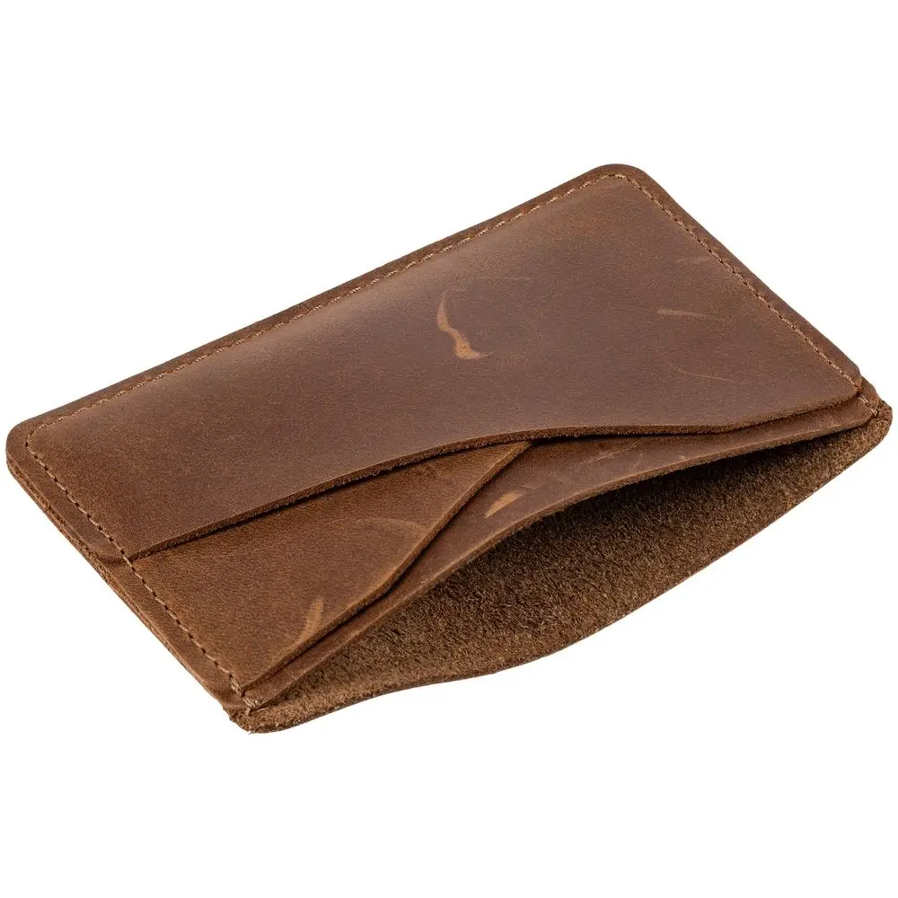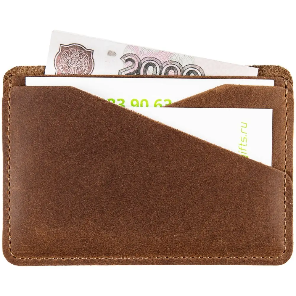 Чехол для карточек изготовлен из плотной и прочной натуральной кожи Crazy Horse. На ее поверхности довольно быстро появляется неповторимый рисунок из потертостей и складок — следы времени придают материалу изысканный винтажный вид, делая каждый предмет уникальным в своем роде. Так изделия, подобно благородным напиткам, со временем приобретают лишь большую ценность.