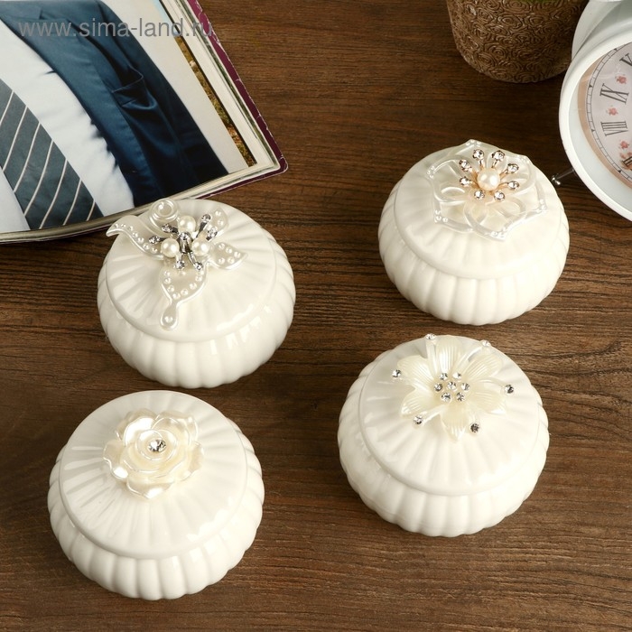 Шкатулка керамика "Перламутровый цветок" МИКС 5,8х7,5х7,5 см
