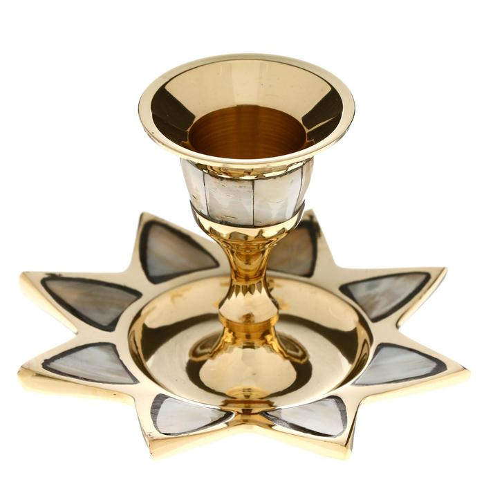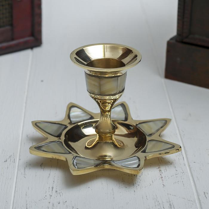 Подсвечник с перламутром "Звезда" на 1 свечу, латунь 9,5х9,5х6,5 см