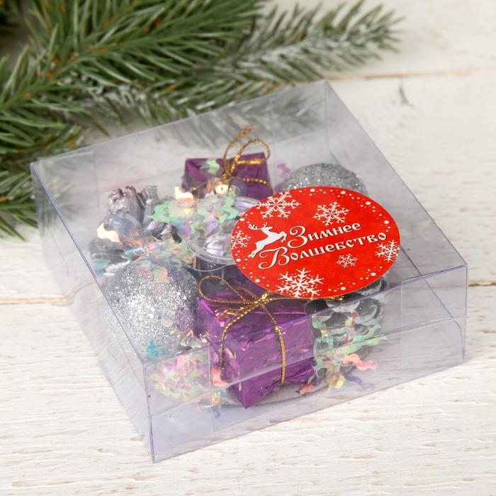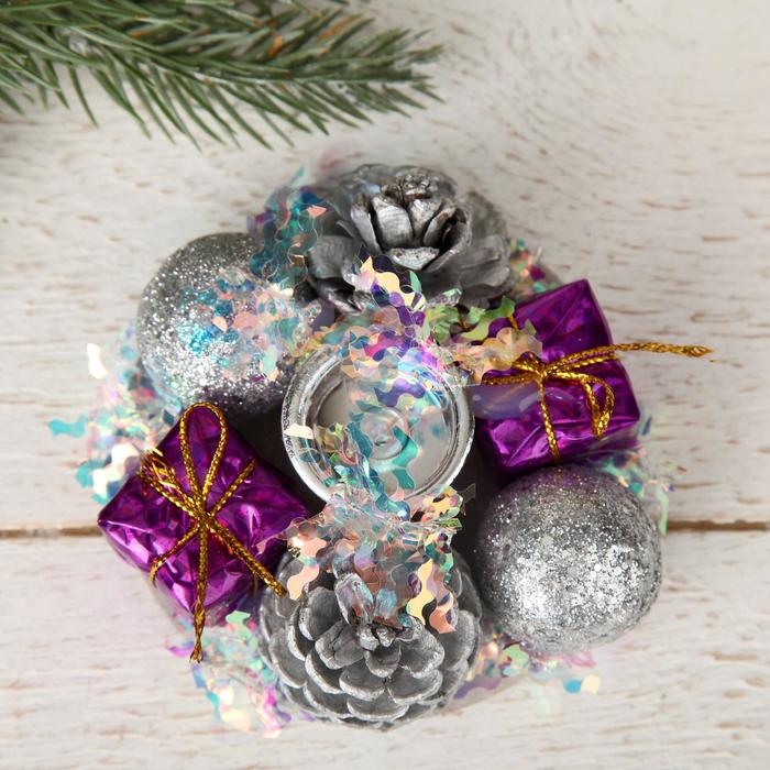 Подсвечник на одну свечу "Мишура волна" шишки, шарик, подарки, 7,5х3,5 см отв d-2 см