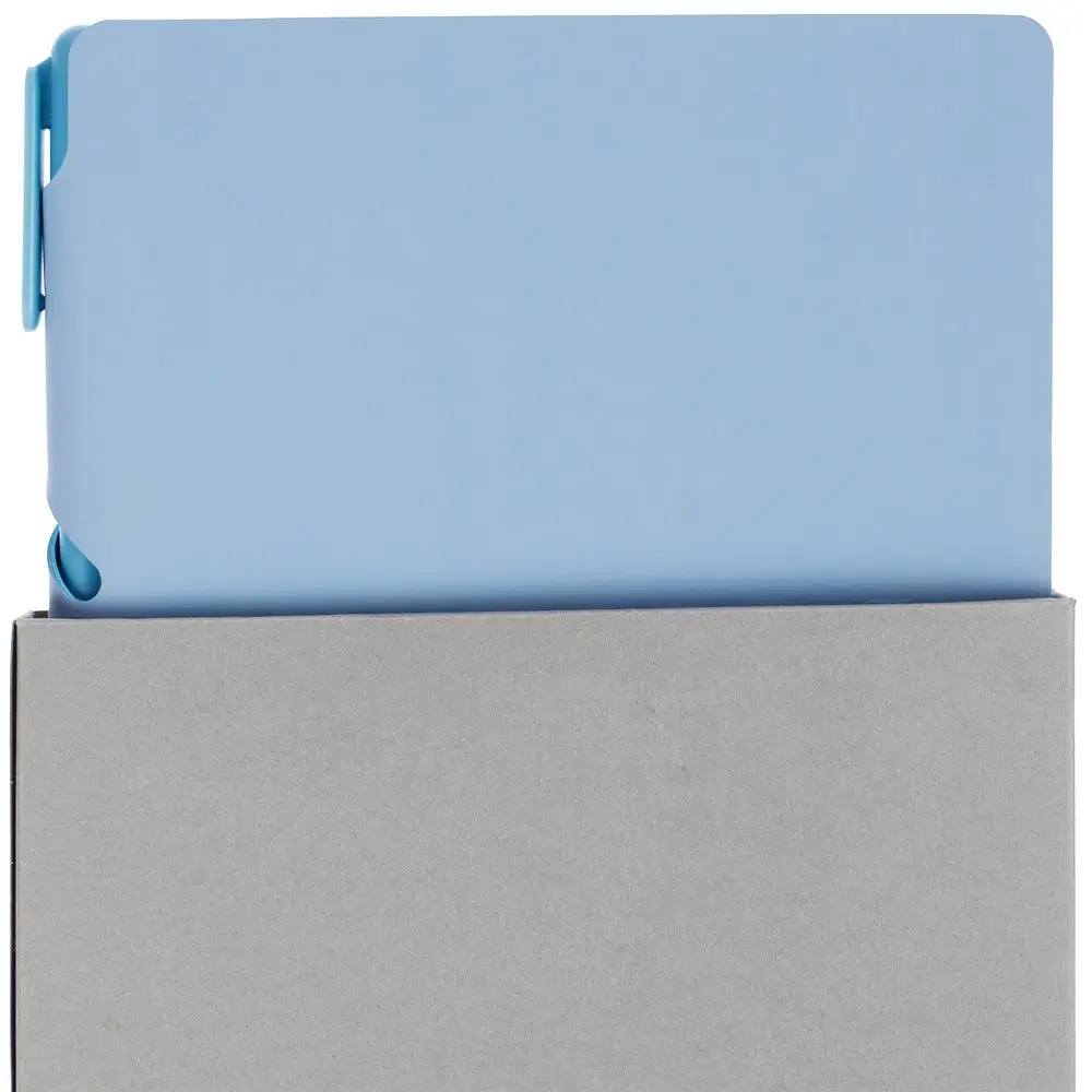 Удобный ежедневник с гибкой обложкой и местом под ручку в корешке, миниатюрная ручка из переработанного пластика и компактная самосборная коробка — простые составляющие полезного делового набора.