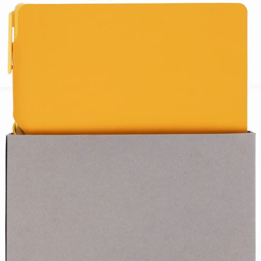 Удобный ежедневник с гибкой обложкой и местом под ручку в корешке, миниатюрная ручка из переработанного пластика и компактная самосборная коробка — простые составляющие полезного делового набора.