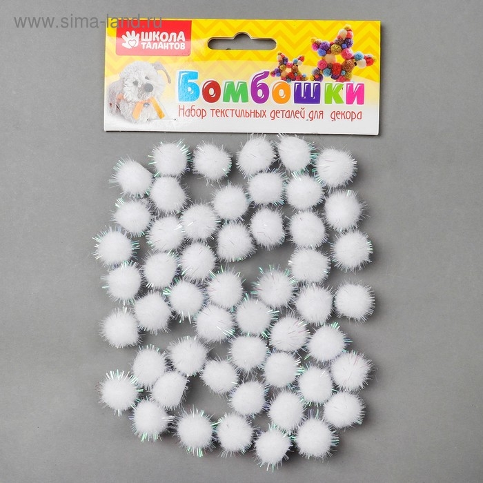 Набор текстильных деталей для декора «Бомбошки» 12 шт. набор, размер 1 шт: 3 см, цвет белый