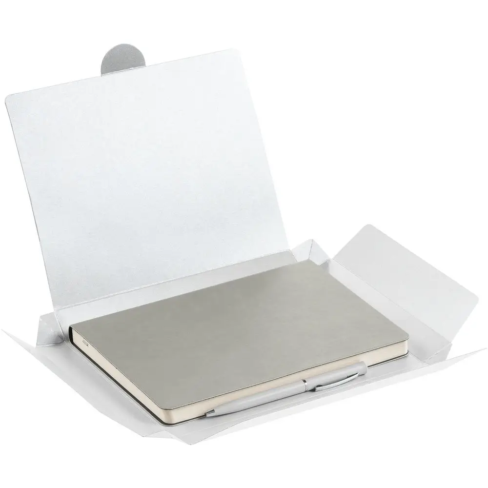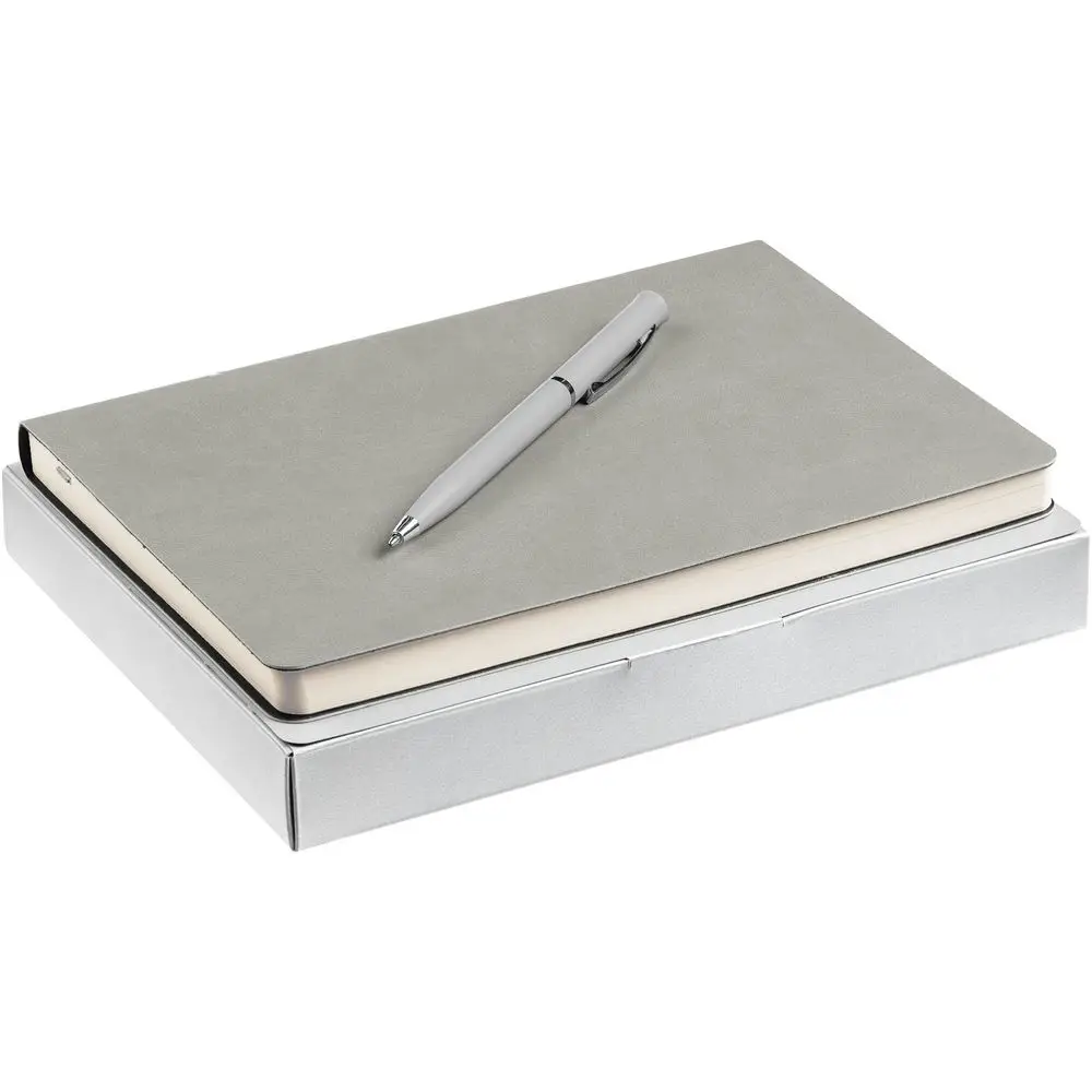 Недатированный ежедневник с гибкой обложкой из материала Latte с ляссе в цвет обложки, а также ручка в тон — в подарочной коробке из дизайнерского картона.