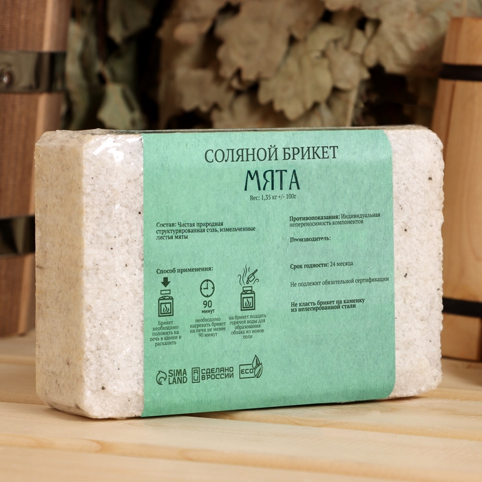 Применение: нагревайте брикет на печи не менее 90 минут, затем поддайте на него горячей воды. Соль наполнит воздух бани ионами, тем самым поможет снять усталость, улучшить кровообращение и общее самочувствие.
