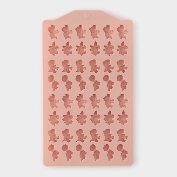 Форма для мармелада Доляна «Дино», силикон, 19×11,7 см, 48 ячеек (1,9×1 см), цвет МИКС
