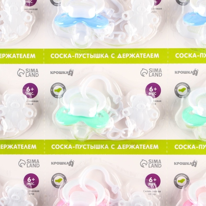 Соска - пустышка силиконовая ортодонтическая, от 6 мес., с держателем, цвет МИКС