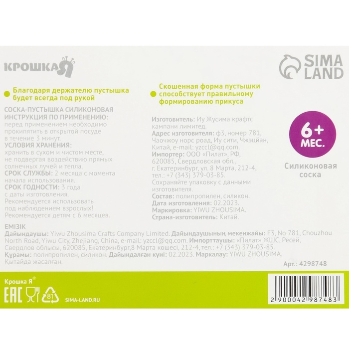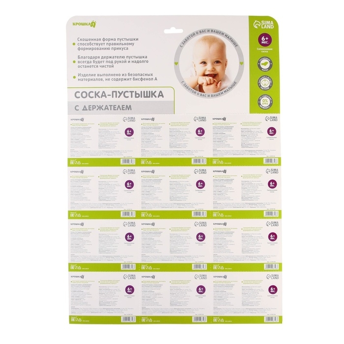 Соска пустышки силиконовая и имеет анатомическую форму диска, специальные вентиляционные отверстия на пустышке улучшают циркуляцию воздуха не раздражают кожу малыша и не оставляют следов и опрелостей. Создана для удовлетворения естественного сосательного рефлекса малышей. Пустышка анатомической формы имеет немного сплюснутый сосок, благодаря чему прилегает к языку.