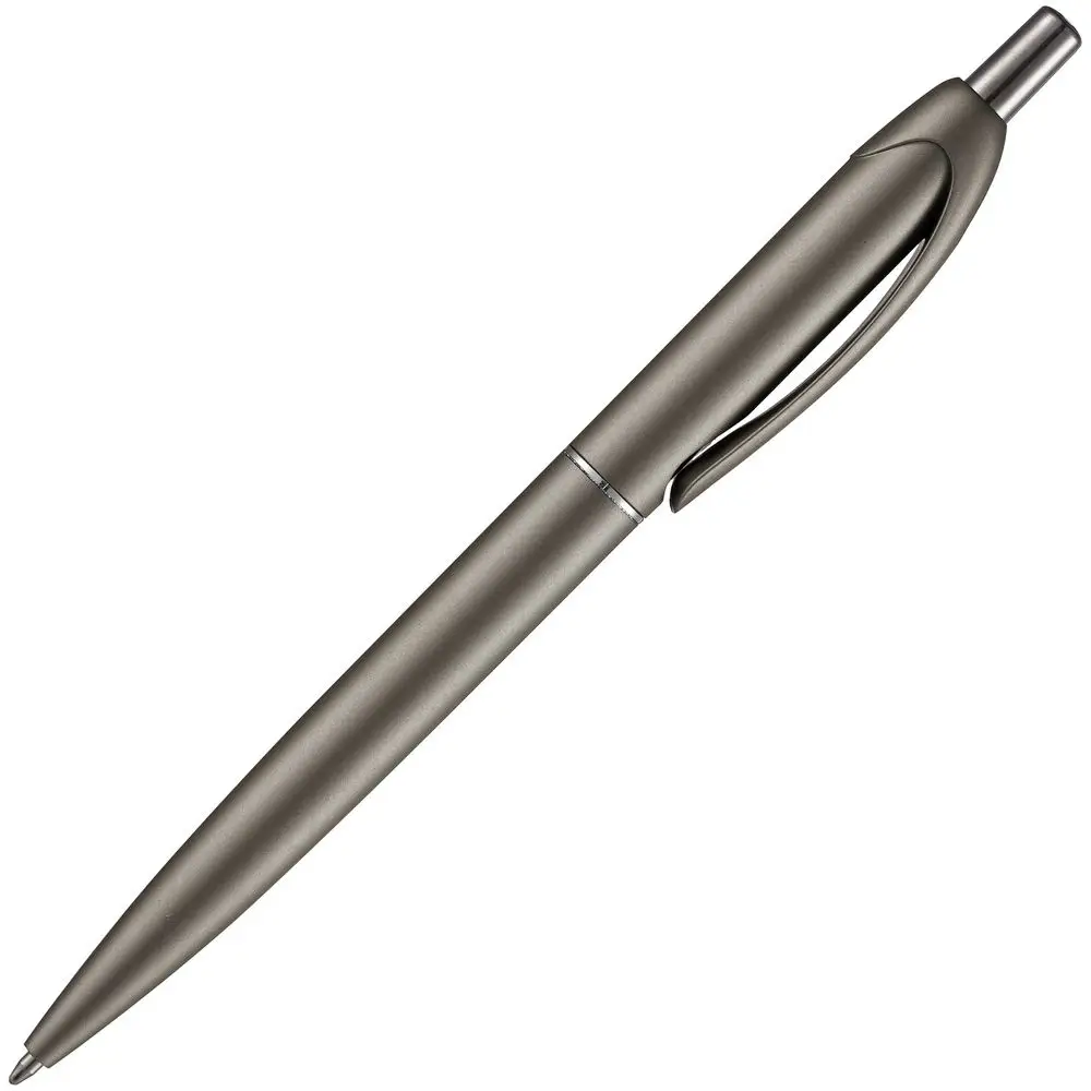 Шариковая пластиковая ручка в корпусе с эффектом «металлик» и серебристыми деталями. Приятная округлая форма клипа добавляет ручке плавности и объема.